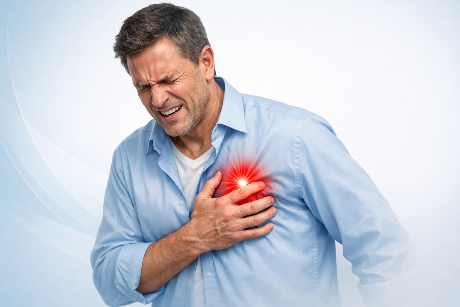 위산이 식도로 역류하면서 가슴 중앙에 통증을 유발할 수 있습니다. 많은 분들이 심장 통증으로 오해하는 대표적인 원인입니다.