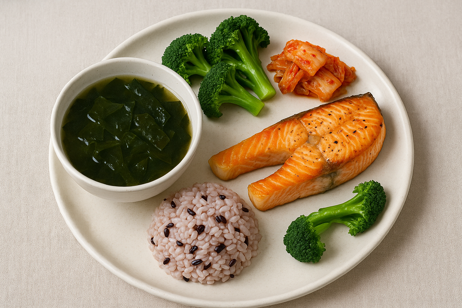 2. 요오드 보충 점심 – 해조류와 연어 중심