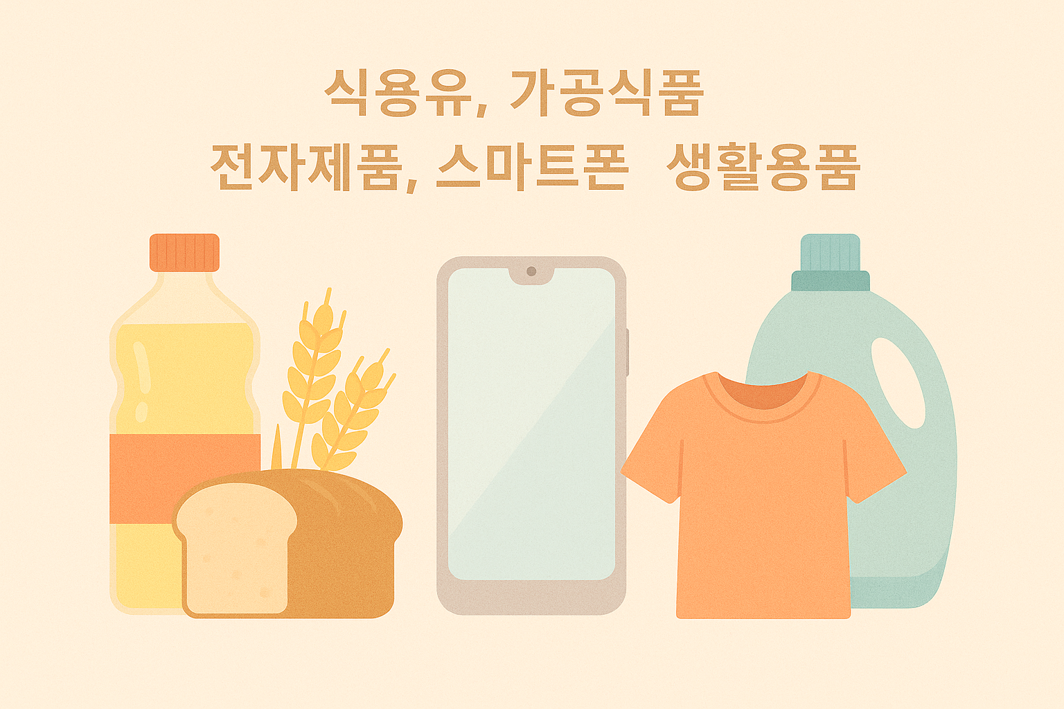한국은 석유·곡물·원자재 대부분을 해외에서 들여오기 때문에 환율이 오르면 다음 항목의 가격이 줄줄이 상승합니다.