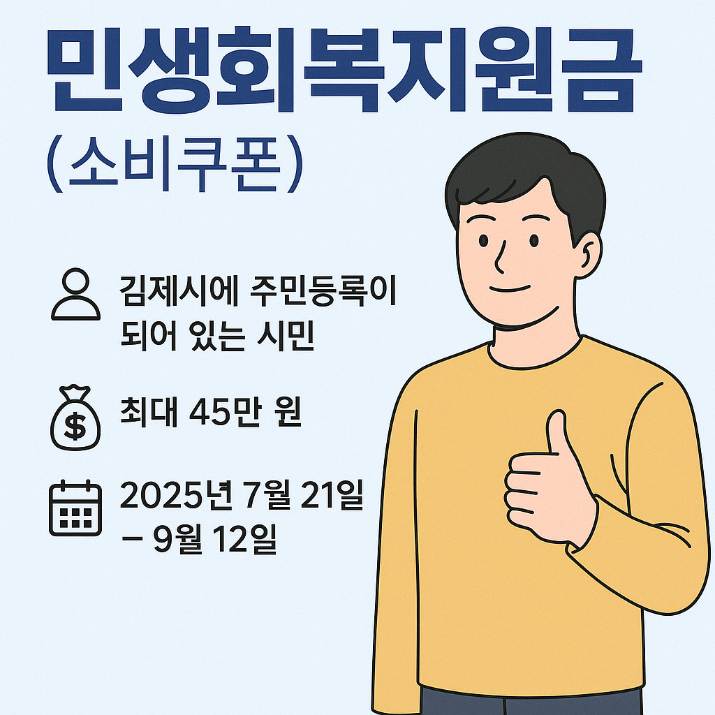 2025년 김제시에서 지급하는 민생회복지원금, 일명 소비쿠폰이 큰 화제를 모으고 있는데요 이번 지원금은 지역경제 활성화와 시민 생활 안정화를 위해 마련된 정책으로, 김제시민이라면 누구나 대상이 될 수 있는 제도입니다. 농어촌 인구감소 지역으로 선정된 곳은 5만원 더 추가지급이 된다고 하는데요, 이번 글에서는 김제시 민생회복지원금의 온라인 신청 방법과 신청 자격에 대해 자세히 알아볼게요~ 알아두면 효녀정보~