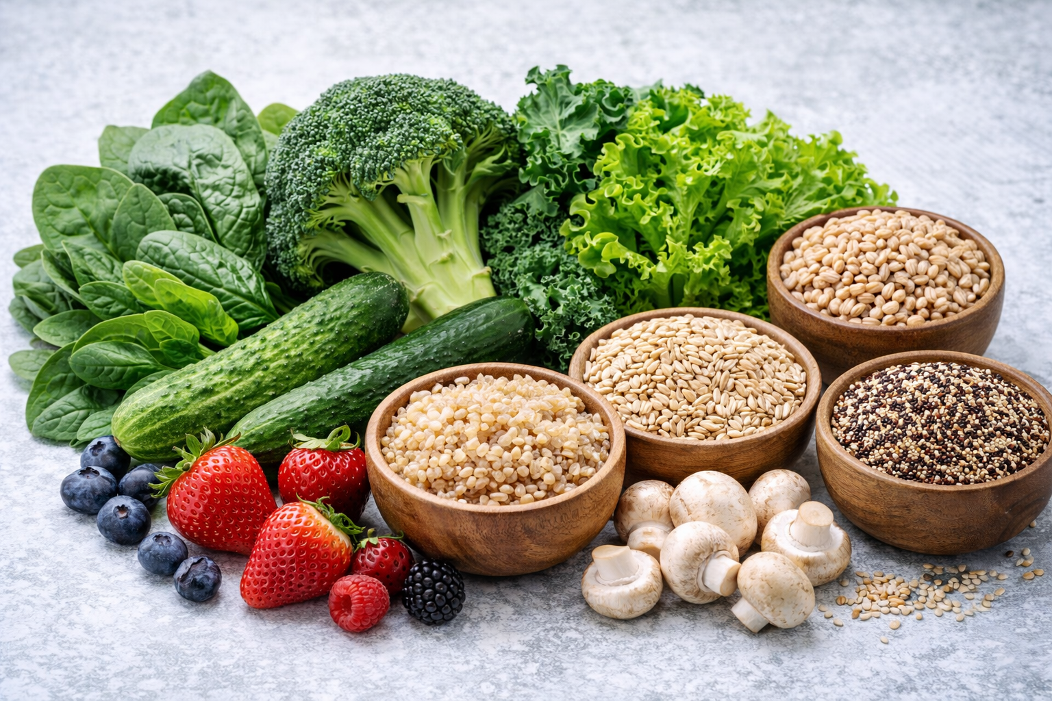 시금치, 브로콜리, 상추, 케일, 오이, 버섯과 같은 비전분 채소는 혈당에 거의 영향을 주지 않으면서 포만감이 좋고, 특히 잎채소는 식이섬유와 미네랄이 풍부해 당뇨 식단의 기본이 됩니다. 채소류는 혈당 급상승을 억제하고 체중 관리에도 도움이 되기 때문에 매 끼니 때마다 충분히 섭취하시는 것이 좋아요.
