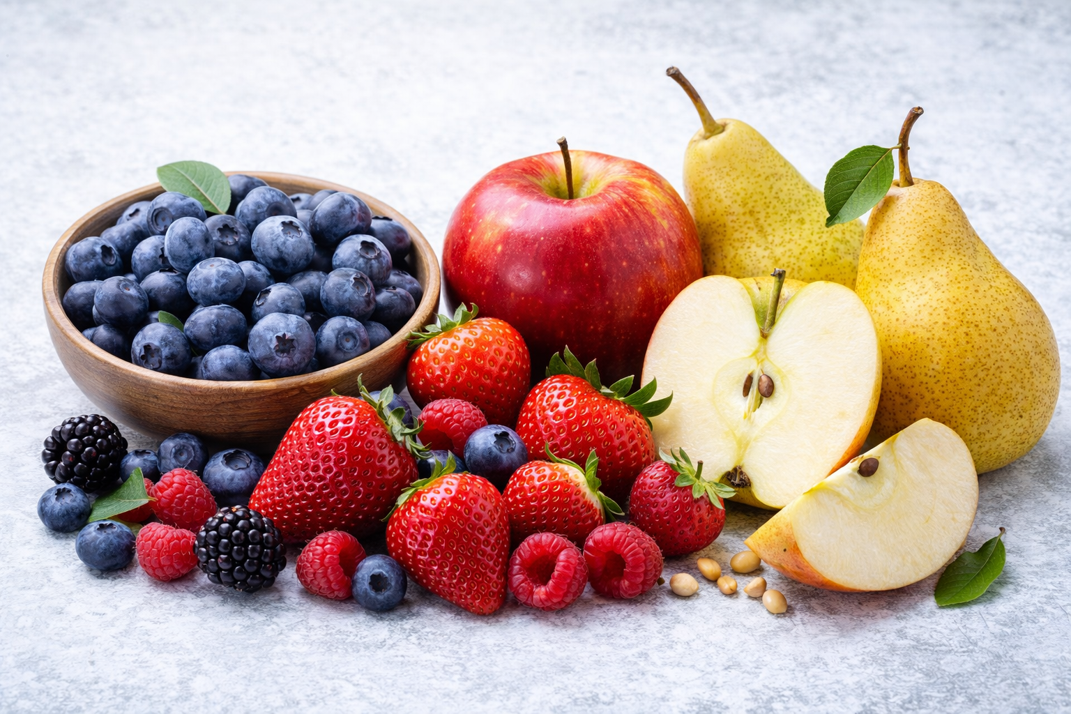 베리류, 사과, 배 등은 식이섬유가 풍부해 혈당 상승이 비교적 완만하지만, 과일도 당을 포함하고 있기 때문에 하루 1회 정도로 적당한 양을 섭취하시는 것이 좋아요. 시판되고 있는 과일주스는 당이 많이 포함되어 있기 때문에 피하는 것이 좋습니다.