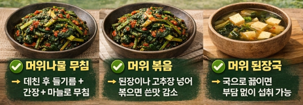 → 된장이나 고추장 넣어 볶으면 쓴맛 감소