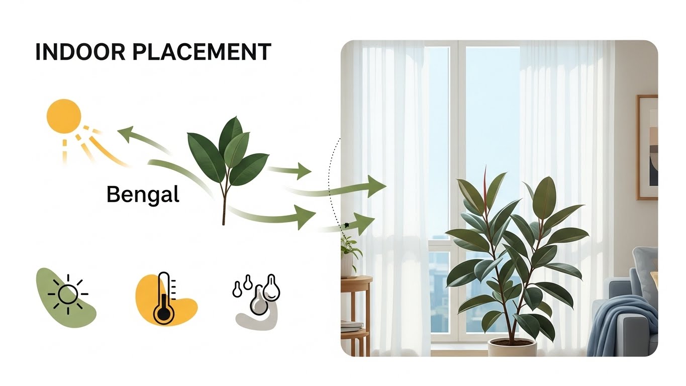 뱅갈 고무나무 실내에서 키우기는 빛·과습 관리·환경 안정 이 세 가지만 지켜도 장기 관리가 어렵지 않습니다.