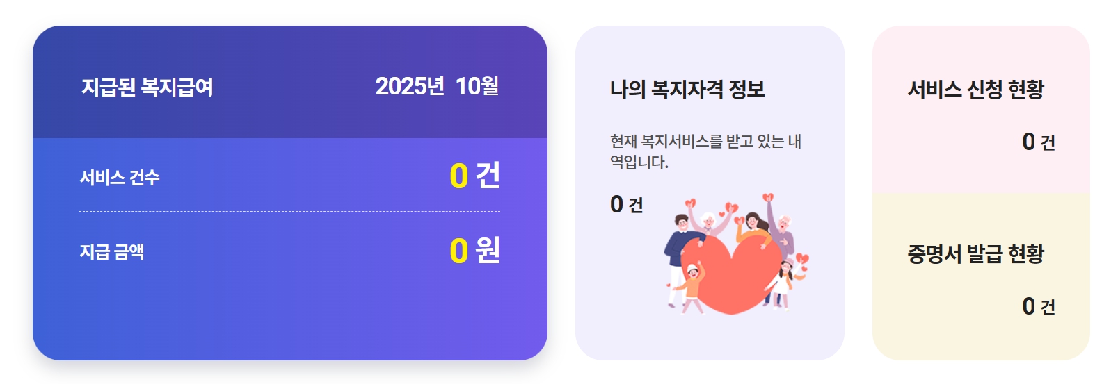 내가 받을 수 있는 복지 혜택을 나이·가구형태·소득·주거 형태 등을 기준으로 자동 추천해 주는 기능입니다.