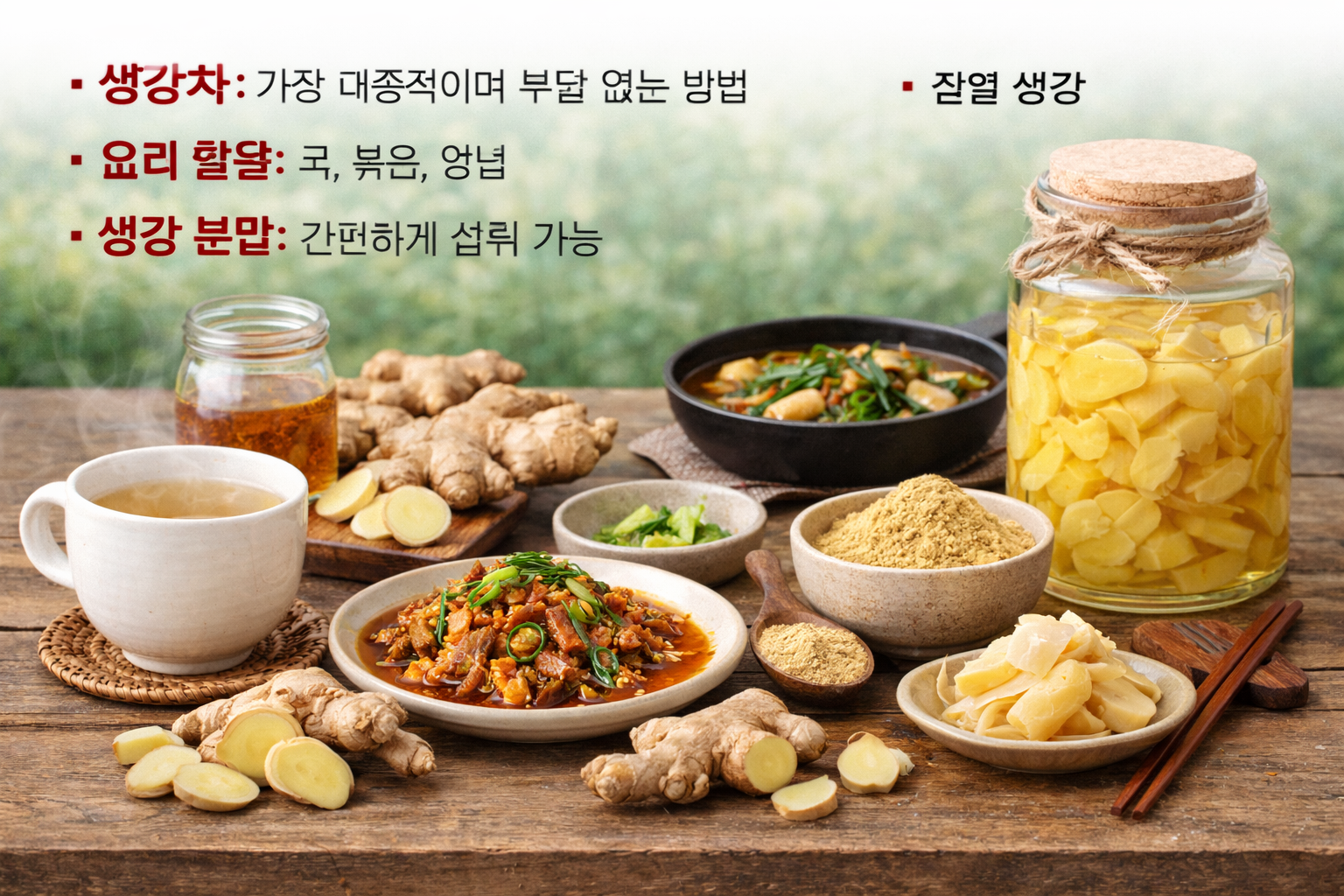 - 생강차: 가장 대중적이며 부담 없는 방법