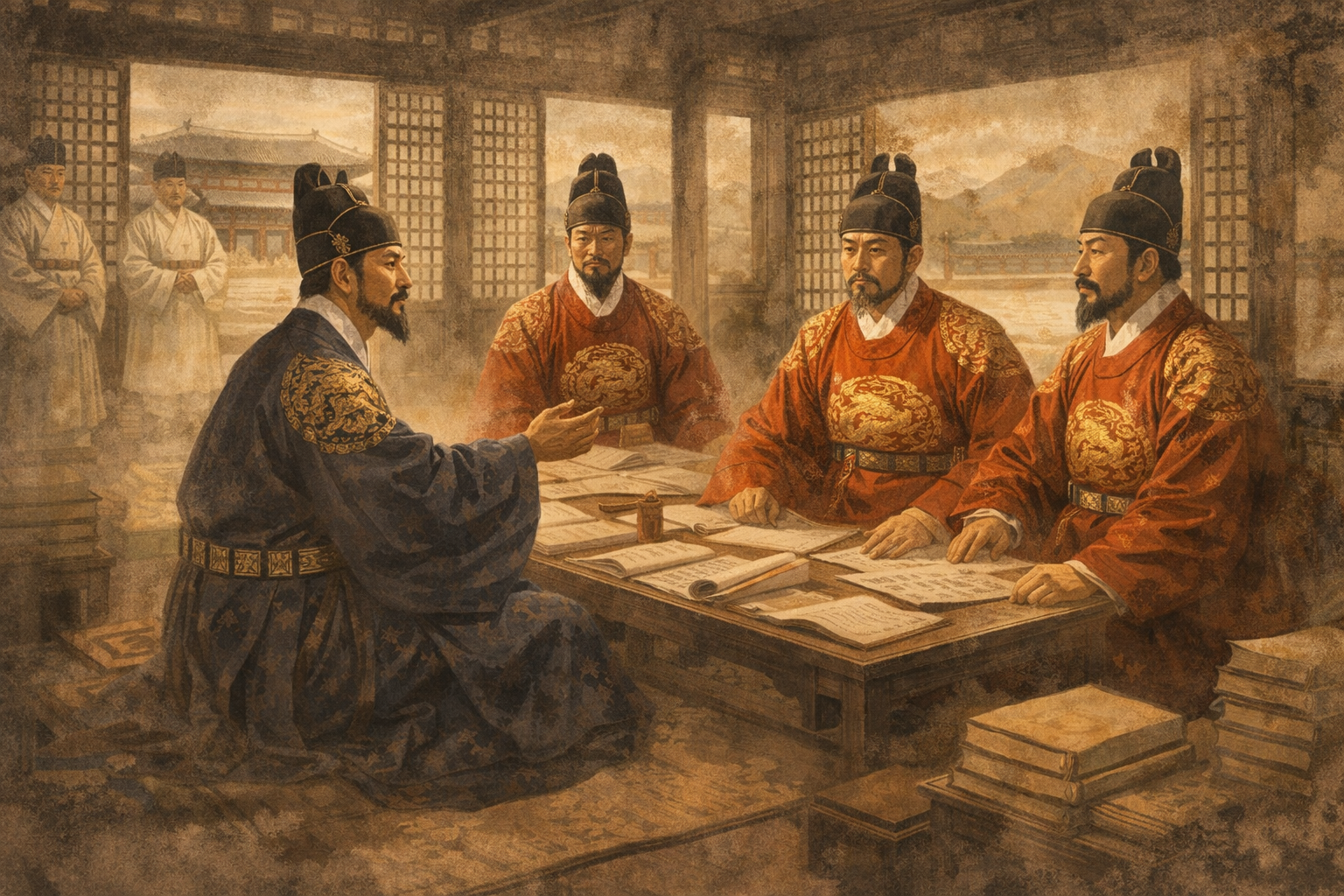 조선시대 왕들의 국정토론 모습 (AI생성)