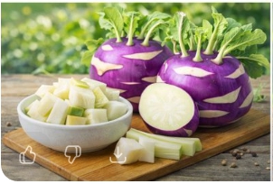 콜라비에는 식이섬유와 칼륨이 풍부해 혈관 건강에 큰 도움을 줍니다.