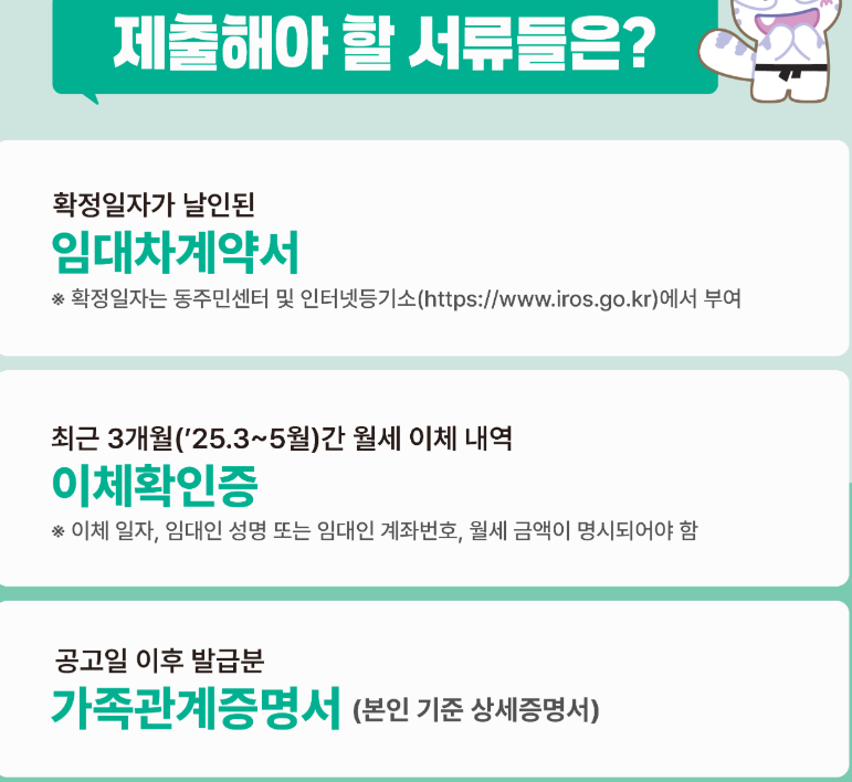 - (아파트 등 특수 거주 형태일 경우 추가서류 제공 가능)