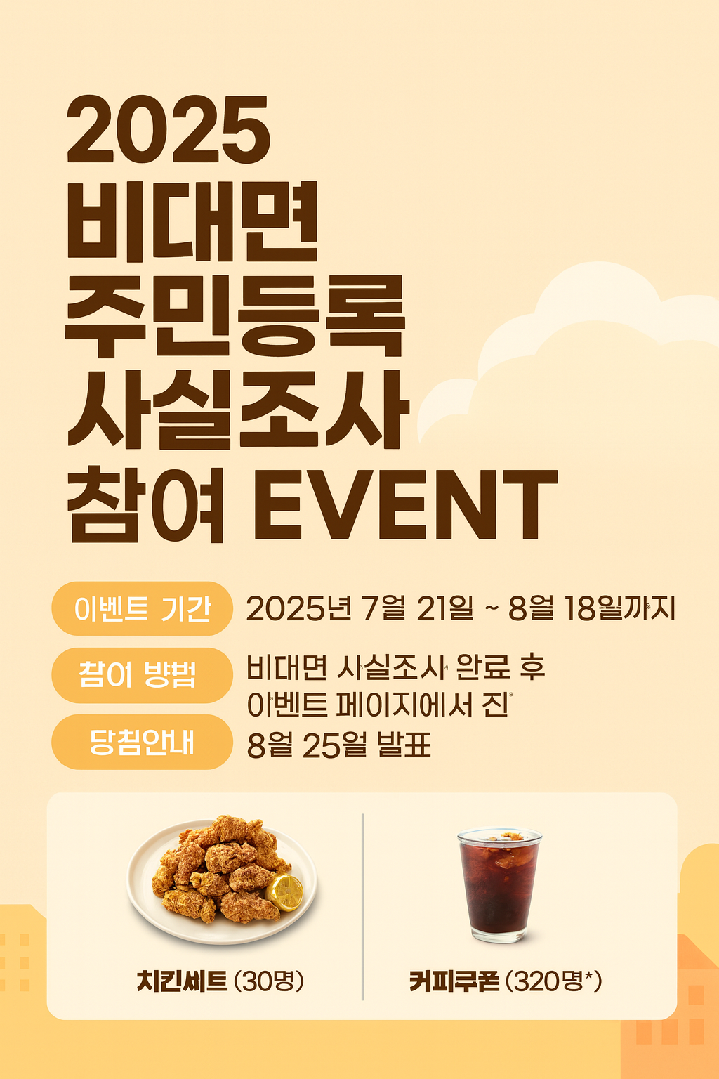 바쁜 일상으로 주민등록 사실조사까지 하기란 정말 힘이 들기도 합니다. 하지만, 이젠 비대면으로 간단히 확인하는 것만으로 도 과태료방지와 정확한 행정 서비스 수혜를 받을 수 있으니, 우리의 권리이자 의무라고 생각하시고 참여하시는 것도 좋을 것 같습니다. 비대면 참여 이벤트도 하고 있으니, 지금 참여해 보세요.