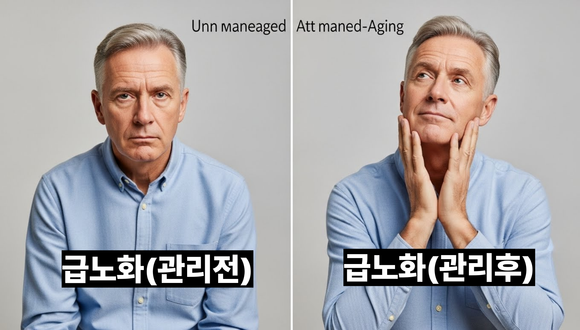 이 두 가지가 동시에 나타나면 피부노화 가속, 근육 감소, 피로 누적, 면역력 저하로 몸 전체가 한꺼번에 늙어버리는 느낌을 받게 되는 것입니다.
